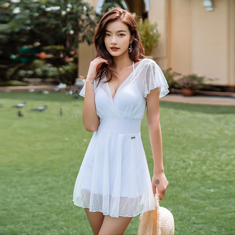 Li Ning swimsuit Female sense one-piece skirt large size belly cover thin beach skirt Conservative ins hot spring one-piece swimsuit