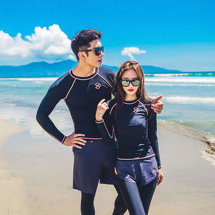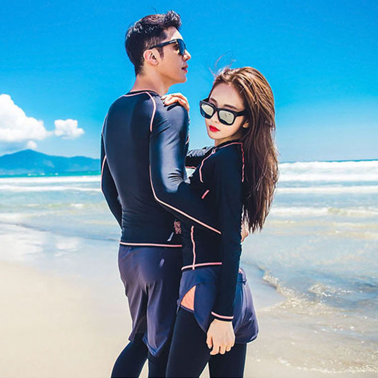 Korean wetsuit female jellyfish suit sunscreen snorkeling long sleeve swimsuit Two-piece suit couple surfing suit men swimming
