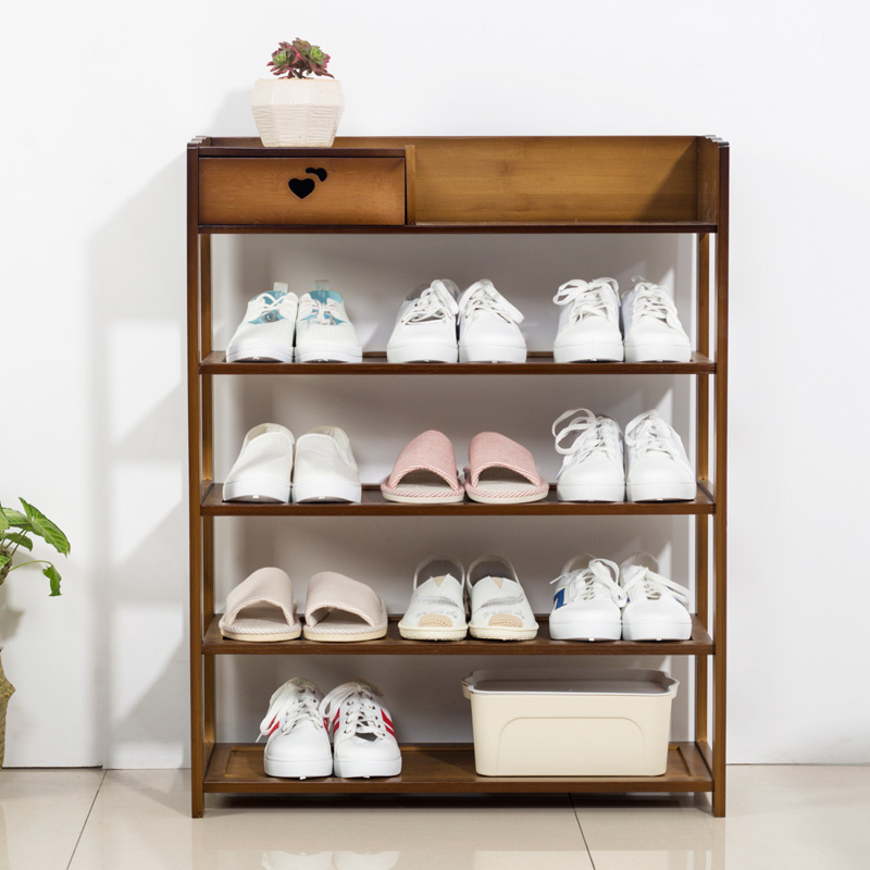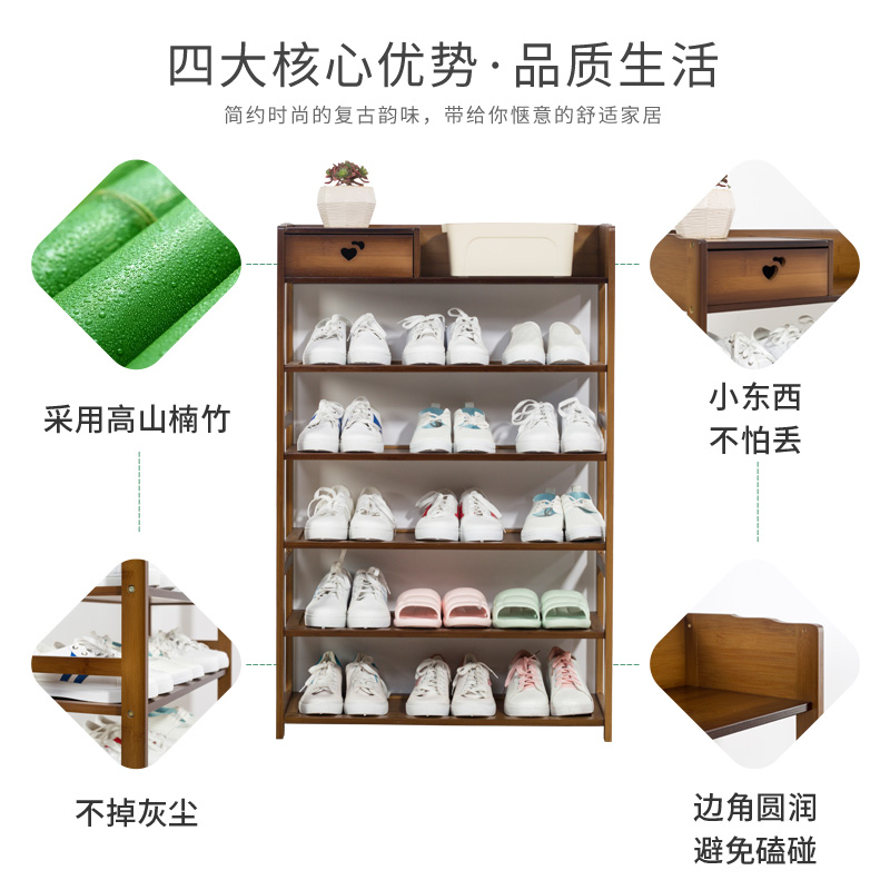 Bamboo-Court Shoe Rack Son Shoe Cabinet Containing Nanzhu Solid Wood Domestic Doorway Shelf Simple Doorway Dust-Proof Shoe Rack Multilayer