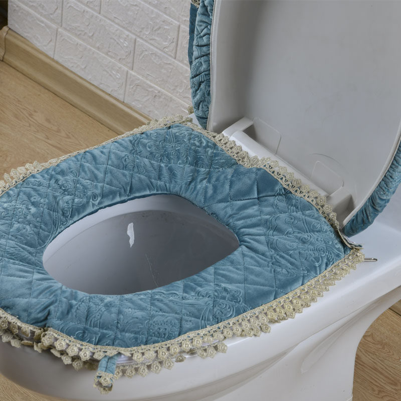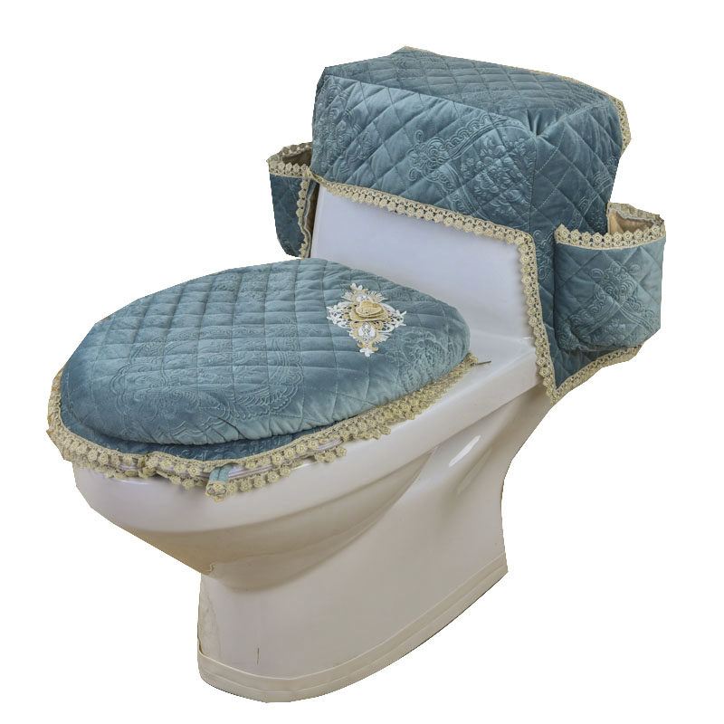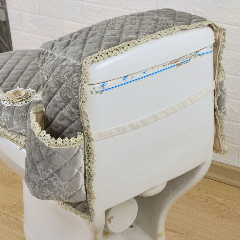 Korean toilet cover four seasons coffee color plush gray green lace toilet cushion three-piece set water tank cover zipper