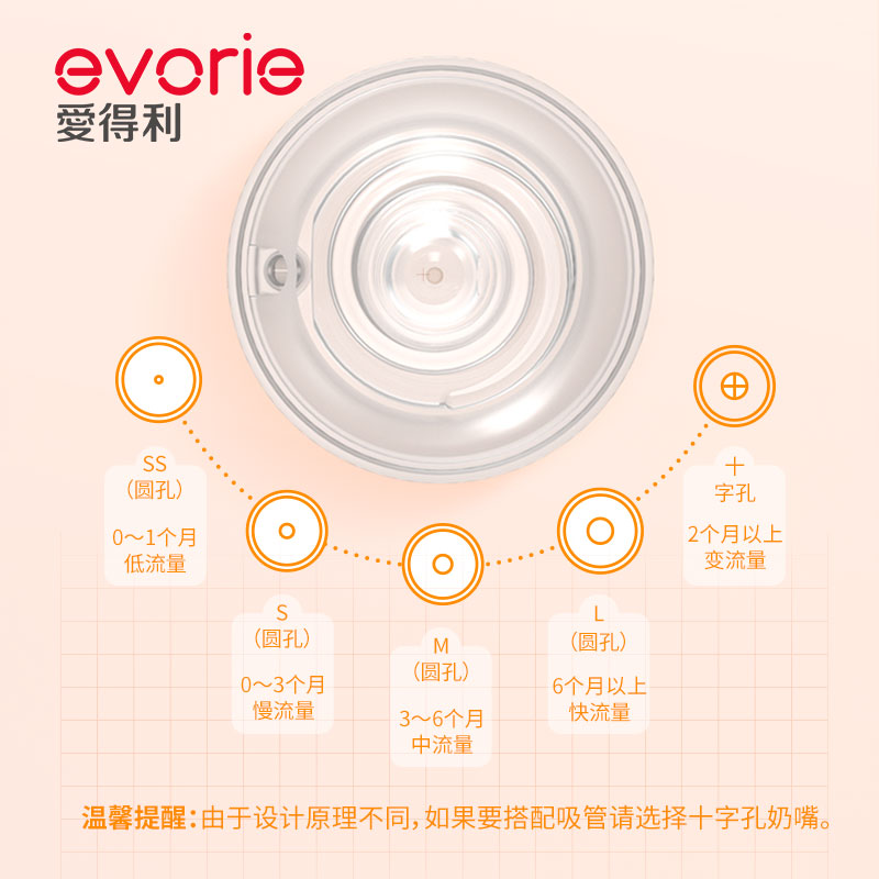 Cross hole (suitable for more than 2-48 months full stage S small round hole(0-3 months) M medium round hole (3-6 months)L Large round hole(6-12 months)