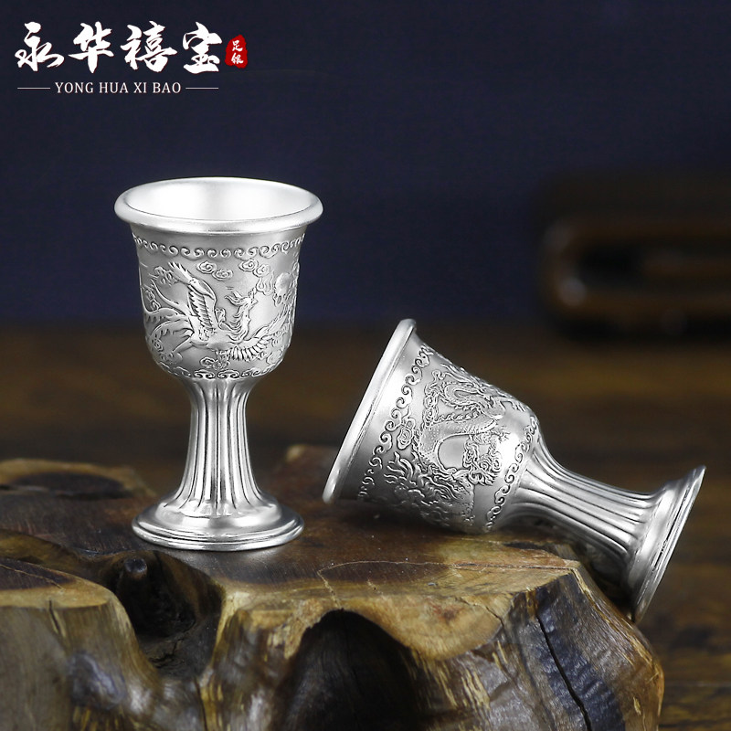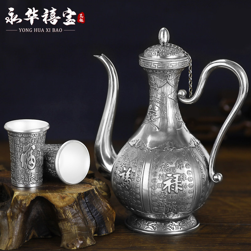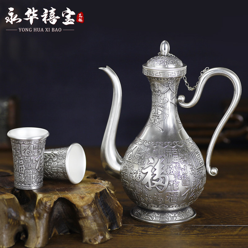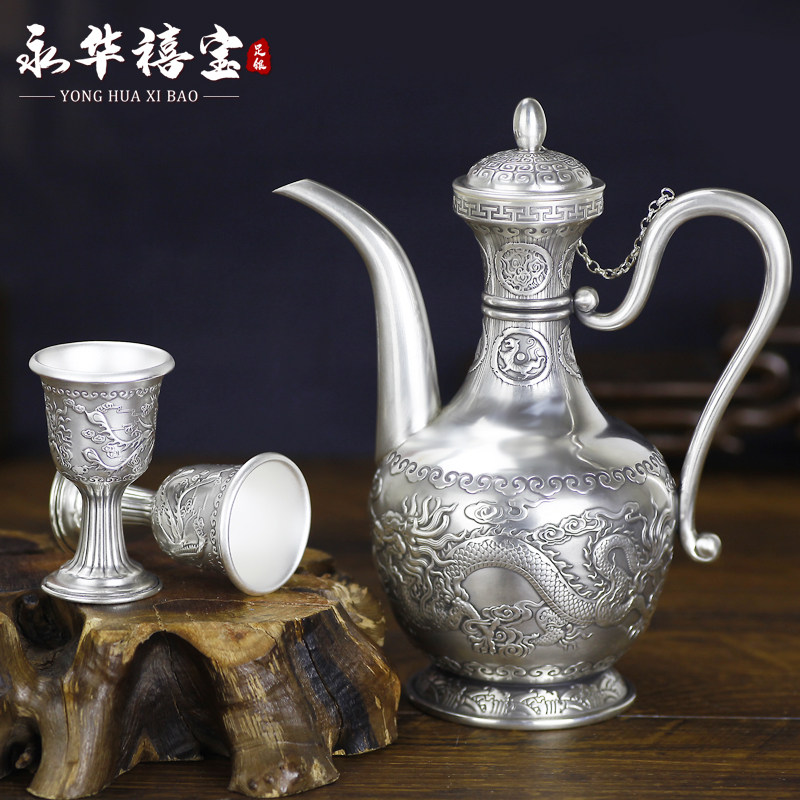 Hundreds Fo Silver Wine Pot about 288 gr Yum Silver Wine Cup 38 gr Hundred Fu Wine With A Pot Of Eight Cups About 592 gr Dragons Crested Silver Wine Jug About 280 gr Dragon's Silver Cup Approx 37 gr Longfeng Wine Tavern