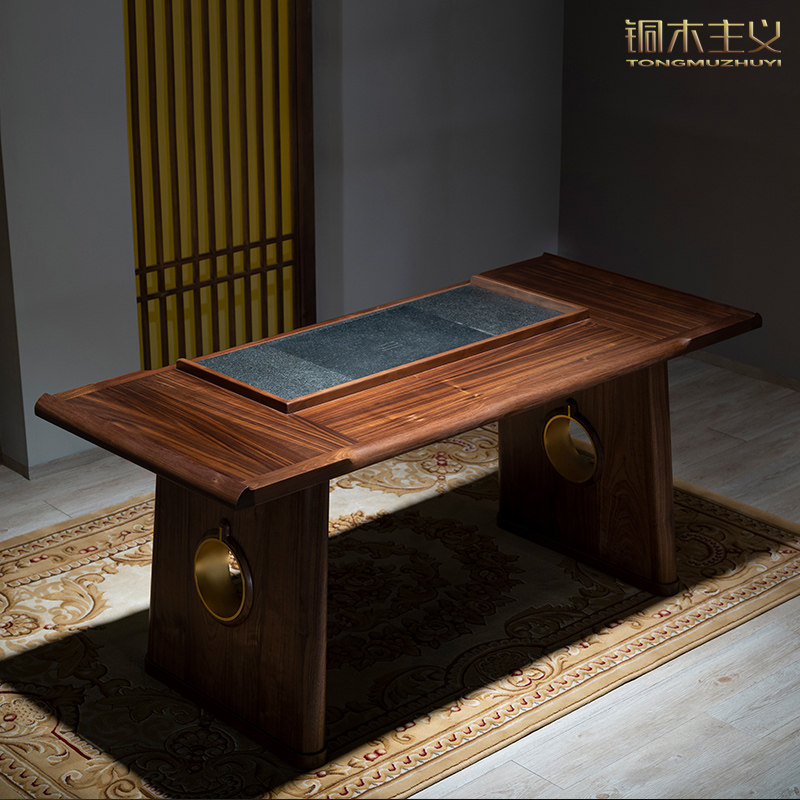 Copper and wood doctrine golden rhyme Tiancheng black walnut solid wood tea table tea chair tea cabinet tea table tea room simple new Chinese furniture