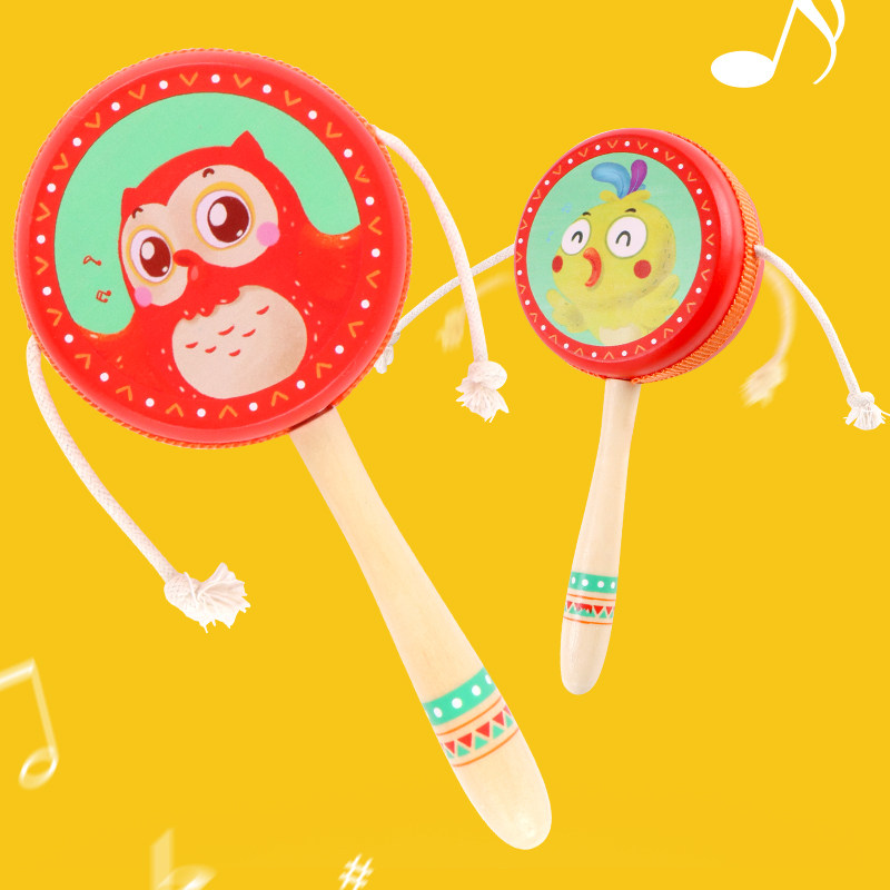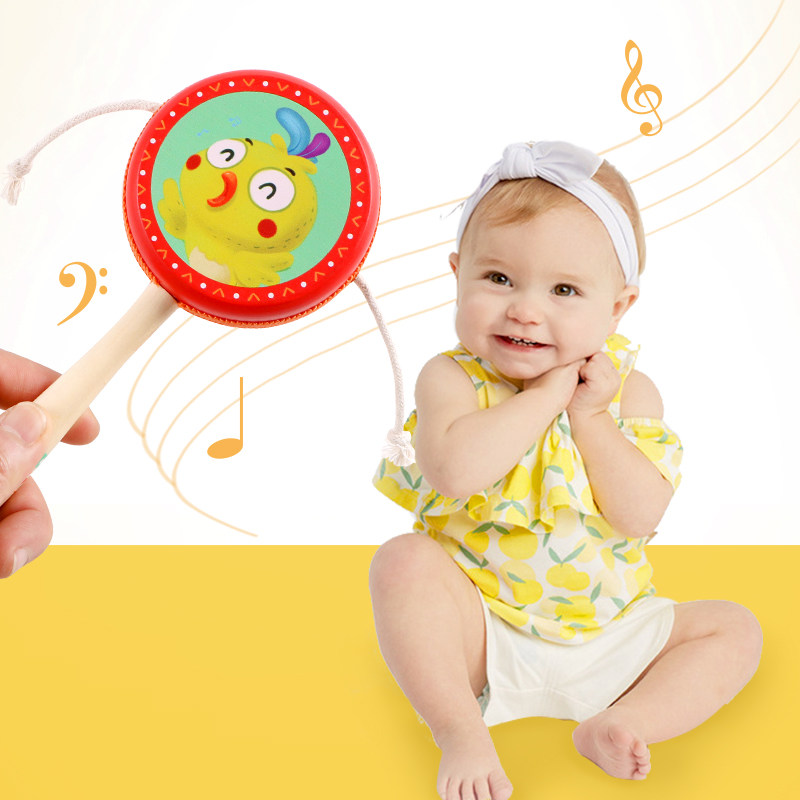 Dial wave drum newborn baby can nibble with wood sheepskin traditional dipland drum young children Toys 0-1-year-old female newborns