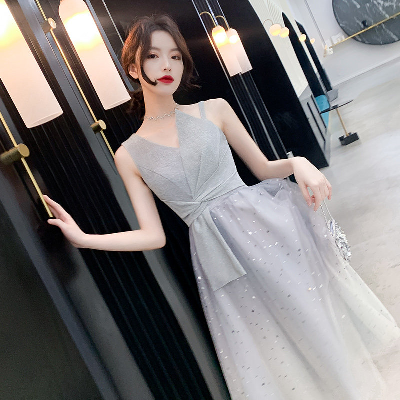 Small Evening Dress Dress Woman 2022 New Banquets Fairy Gas Dream Gas Field Fairy's Department of Dress Simple and generous