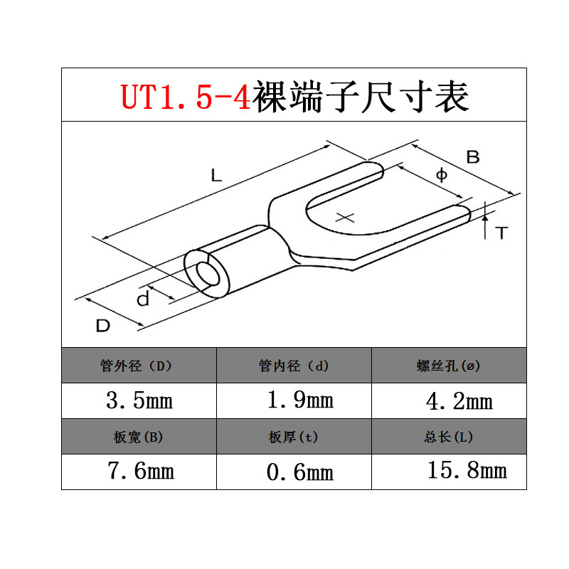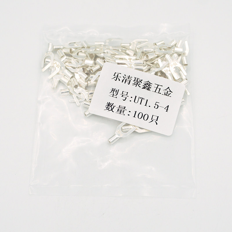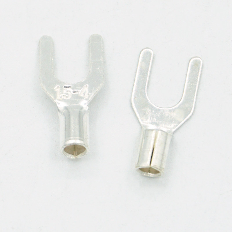 UT1 5-4 Cold pressed wiring terminals U-type Y-shaped fork shaped bare end head copper wire nose silver plated copper wiring ear 100 only