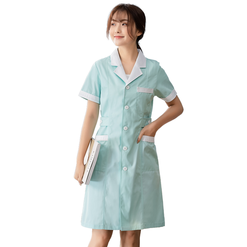Green coat white collar short sleeve green coat white collar long sleeve