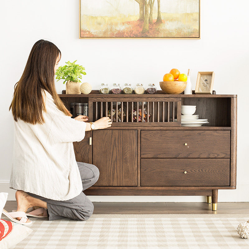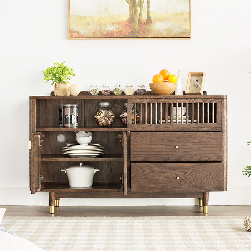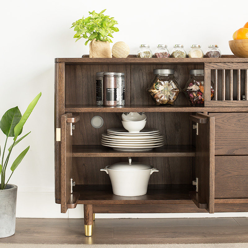 Excellent wood furniture all solid wood dining cabinet Nordic simple oak furniture solid wood storage cabinet sliding door dining cabinet q