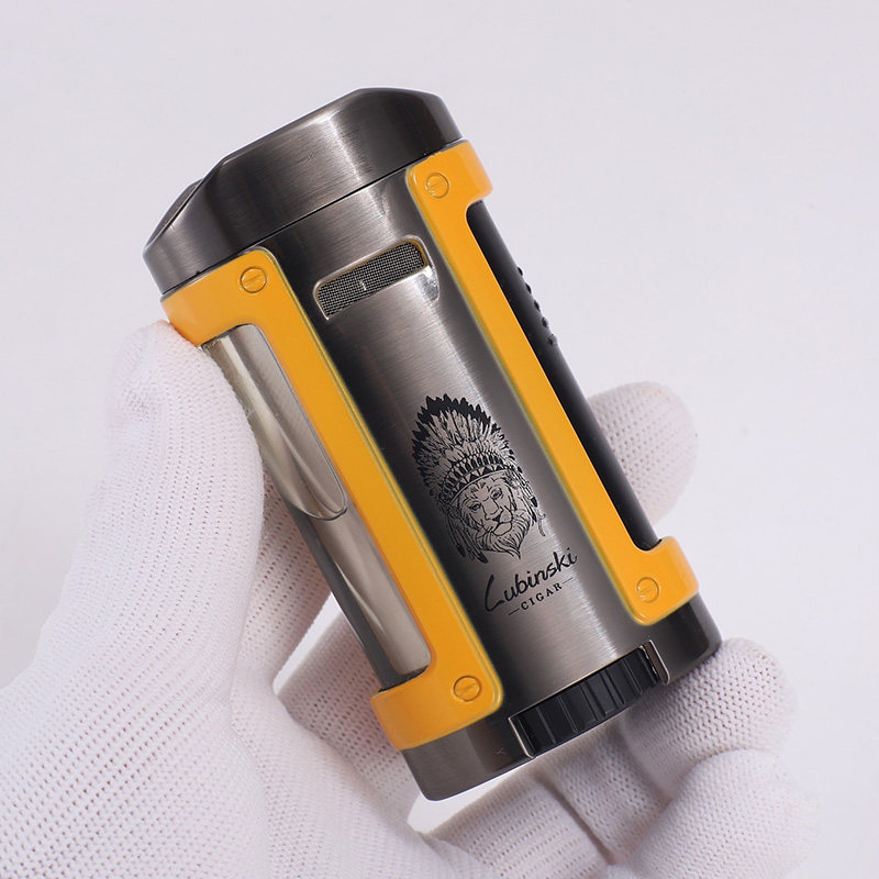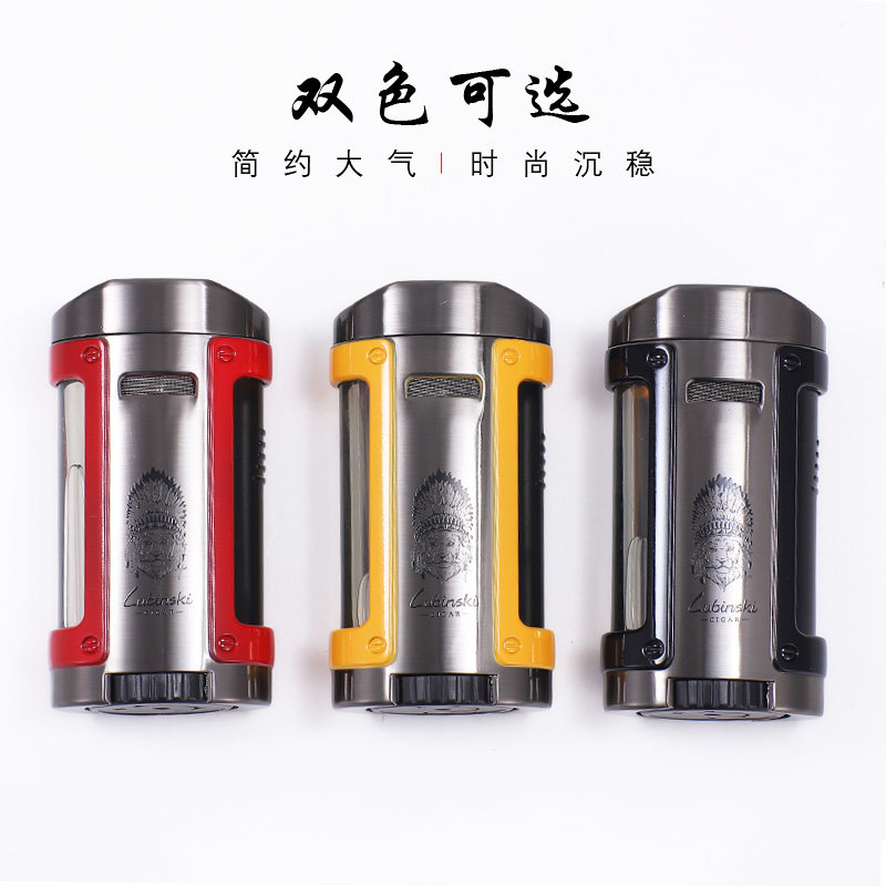 Rubinsky cigar lighter creative personality four fire straight into the lighter cigar smoke bracket lighter leather case