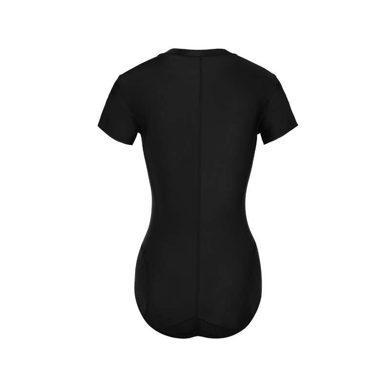 (SEACMYDODO) swimsuit women's black short-sleeved one-piece cover belly is thin conservative student casual hot spring swimsuit