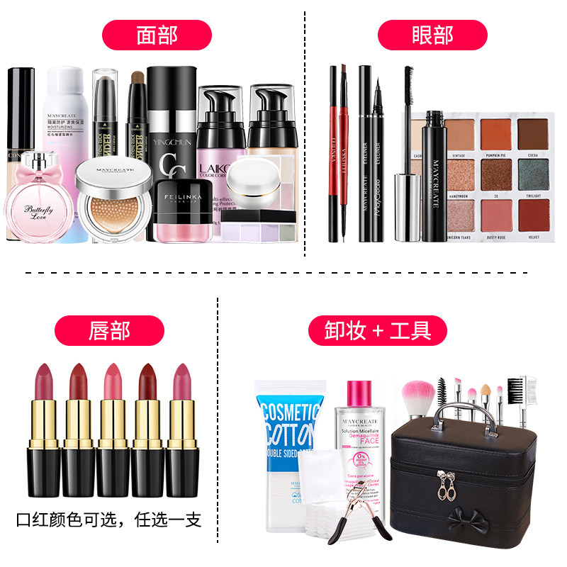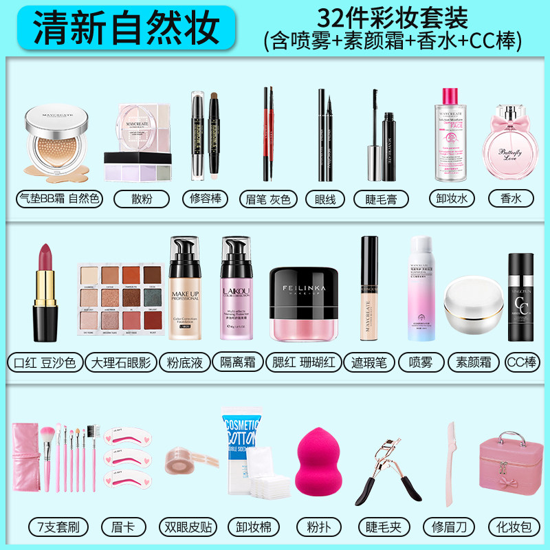 29 pieces of natural makeup (with spray) 29 pieces of peach makeup (with spray) 29 pieces of smoked makeup (with spray) 29 pieces of woman makeup (with spray) 30 pieces of natural makeup (with spray)
