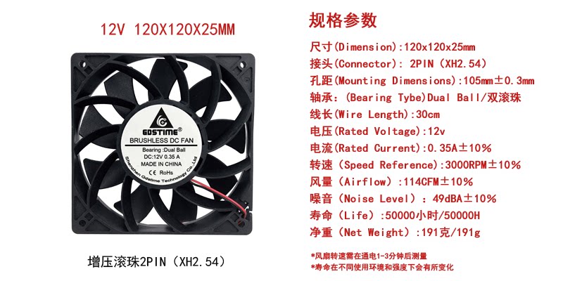 DC12v 12CM cm 120x120x25mm high speed supercharged high air volume ball chassis cooling fan