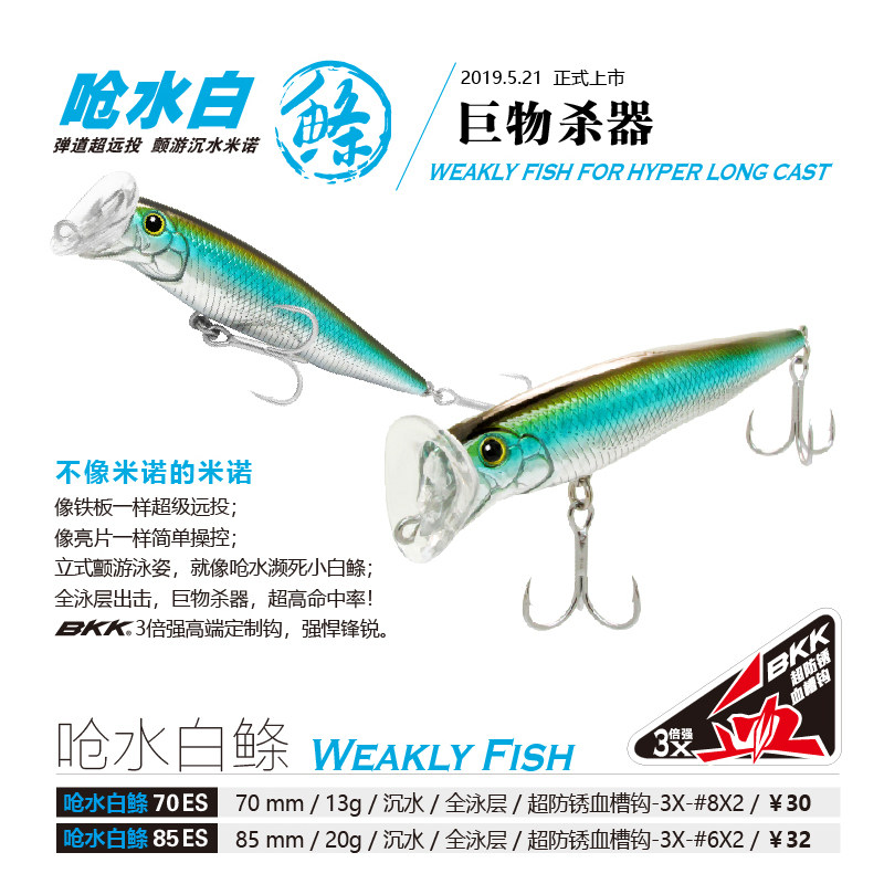 Blue Flag Fish Ballistic Choking Water White 13g Yuan to sink water Mino teething Salmon Mandarin Fish Lujah Bait Giant specializes in