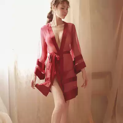 Sexy nightgown cardigan gown transparent pajamas hollow lingerie sexy pajamas seduces saucy husband skirt super short