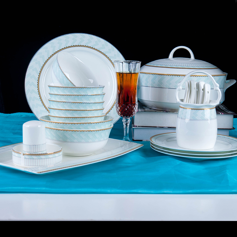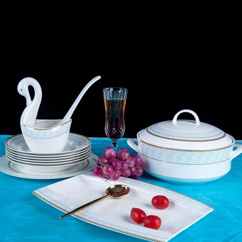 Jingdezhen Bone China Porcelain Cutlery Cutlery Sets High-end Home Bowls Dish Suit Bowls Pan-O-Style Brief Porcelain Pan Chopsticks Composition