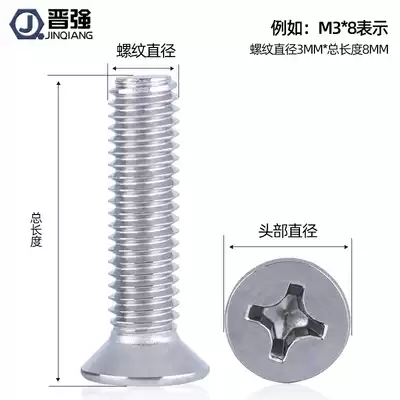 304 stainless steel countersunk head screw Cross flat head machine wire flat tail screw KM cross groove countersunk head machine screw M3