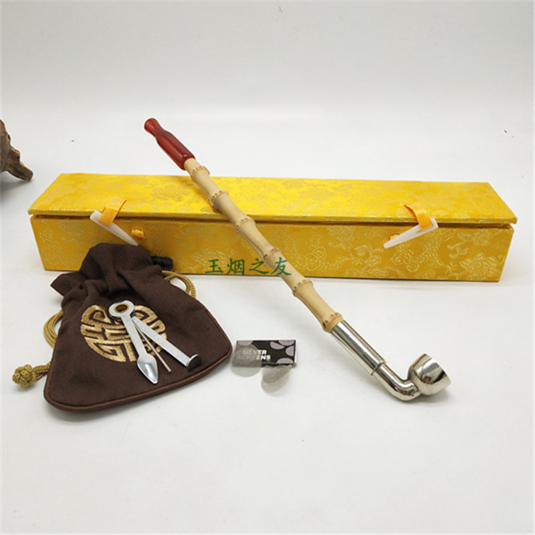 Dry cigarette bag bamboo long pole old dry pipe cigarette bag pot old handmade pipe traditional retro smoking set to send elders