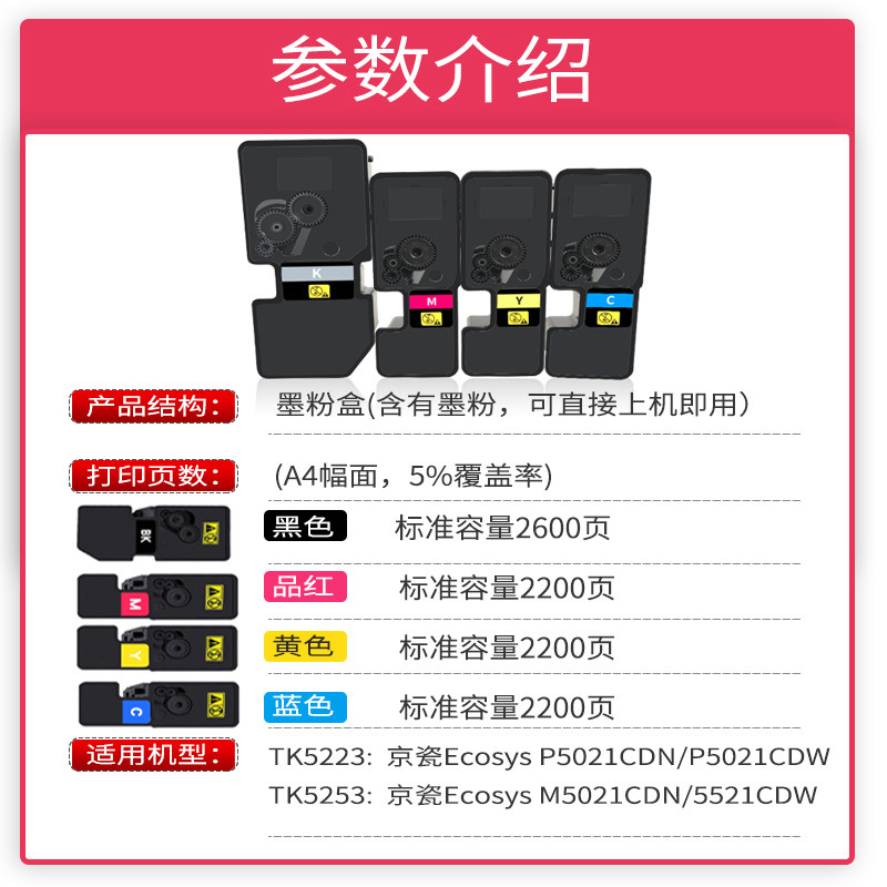 Suitable for Kyocera TK5223 powder box ecosys P5021CDN CDW printer toner M5021CDN M5521CDW copier ink cartridge 52