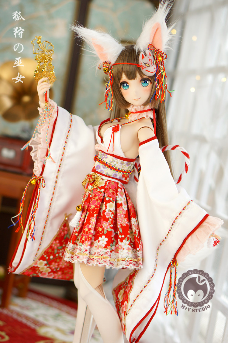 (Meow house)Fox hunting witch cute improved witch costume Nine tail Kimono costume baby clothes 3 points BJD DD