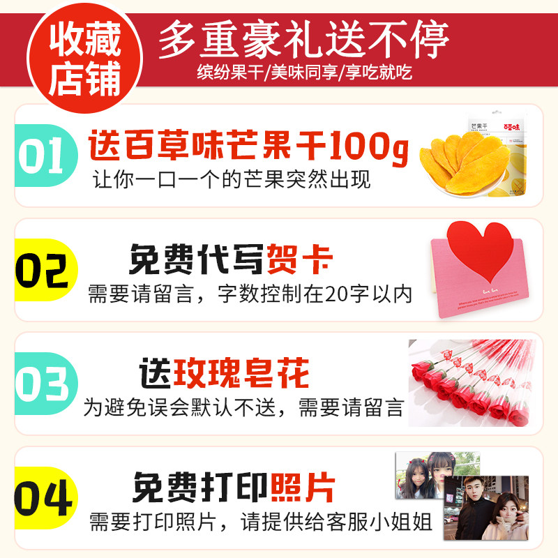 26 Dried Fruit Packs (Little Fairy) 26 Dried Fruit Packs (Cute Tiger Gift Box) 26 Dried Fruit Packs (No Gift Boxes) 26 Dried Fruit Packs (Pig Feeding Time) 26 Dried Fruit Packs (AirDrop Box) 26 Dried Fruit Packs (My Goddess) 26 Dried Fruit Packs (For the Rest of Your Life) 26 Dried Fruit Packs (Birthday Gifts) 26 Dried Fruit Packs (Long-Distance Love) 26 Dried Fruit Packs (Happy Duck) 26 Dried Fruit Packs (Survive a Different Place) 26 Dried Fruit Packs (Take Care of Yourself) 26 Dried Fruit Packs ( Hand-held gift box) 26 kinds of dried fruit gift pack (random gift box) 26 kinds of dried fruit gift pack (taste of the year gift box) sweet and sour like a love collection plus purchase Priority shipping