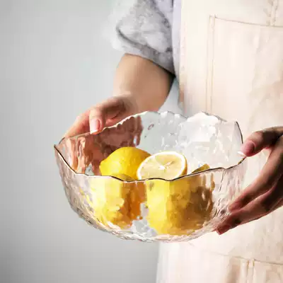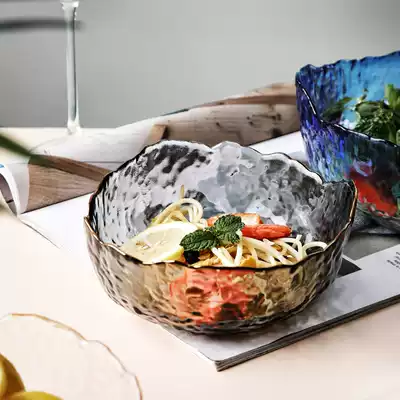 Glass bowl Large salad bowl Net celebrity fruit plate Phnom Penh tableware creative dessert bowl Light luxury transparent Nordic ins