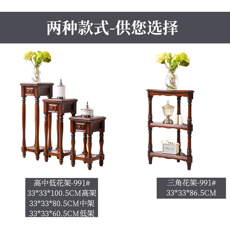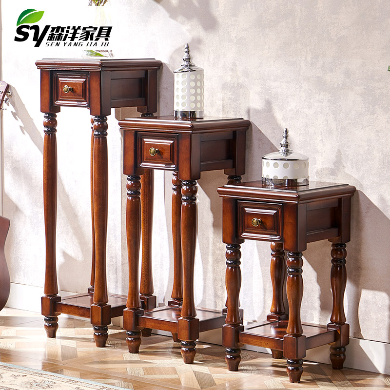 American-style living room all solid wood Roman columns, high, medium and low triangles with small drawers potted ornaments to put flowers on a few shelves