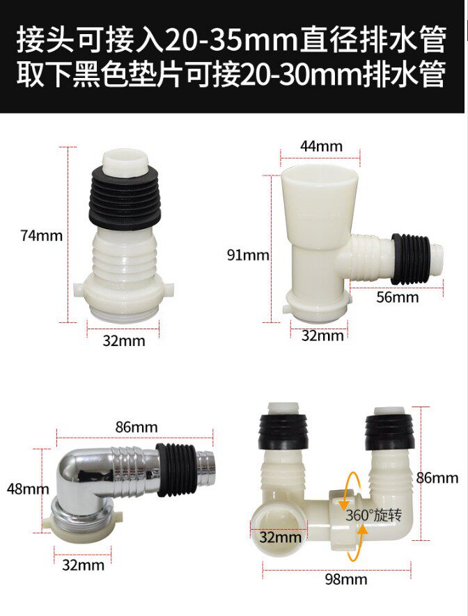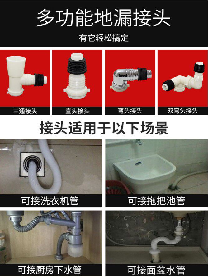 Submarine washing machine floor drain sewer tee joint washing machine anti-backwater overflow anti-odor anti-insect dense silicone