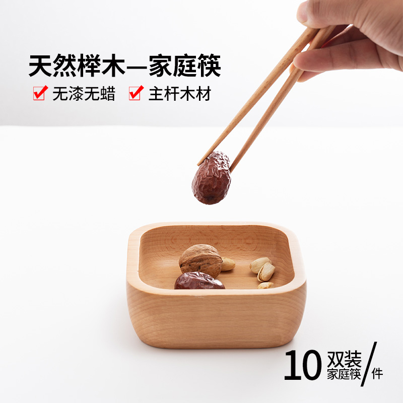 Chopsticks Home Natural solid wood mildew resistant and high temperature resistant 10 Double family cutlery No lacquer No wax bamboo Fast Sub-upscale