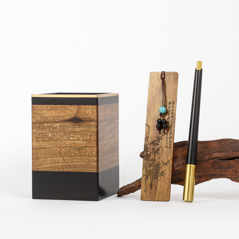Mahogany pen holder high-grade golden silk nan wood retro Chinese style creative desktop decoration storage office pen holder lettering business gift custom logo