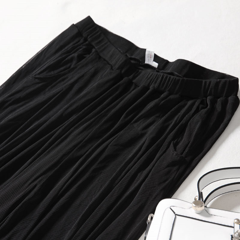 Double Layer Knit Genuine Silk Mesh Broadlegged Pants Summer Loose Display Slim Wide Pants Casual Pants Tightness Waist Skirt Pants 90% Pants