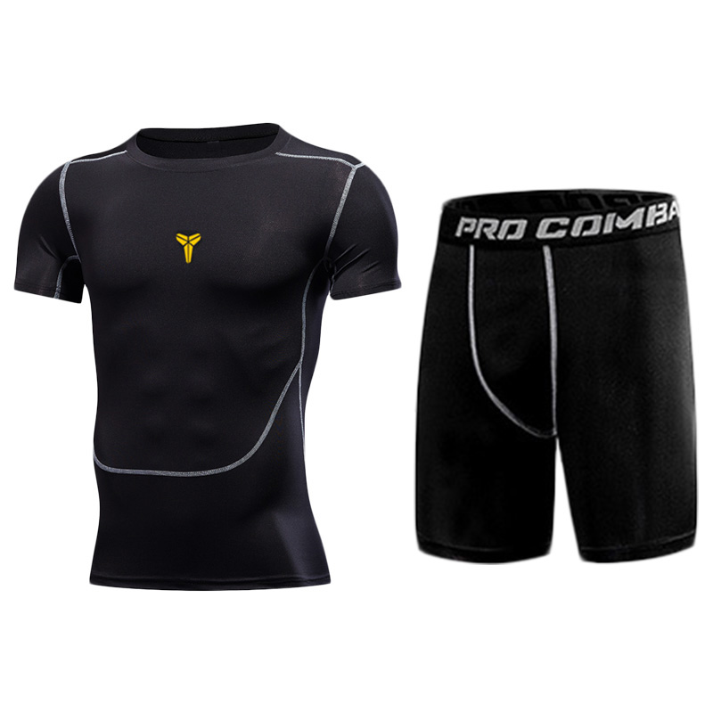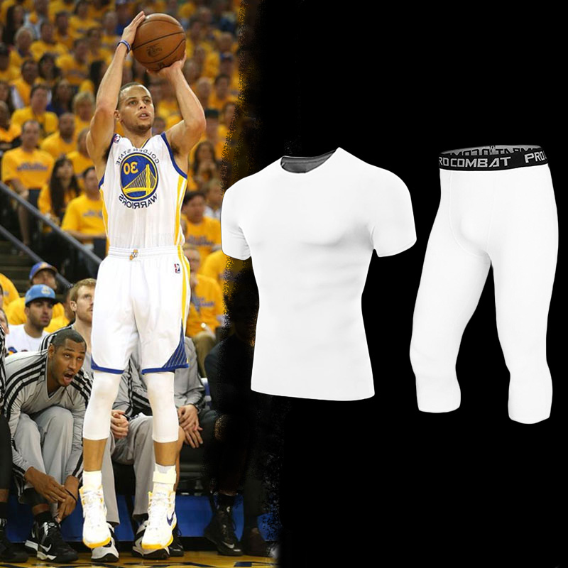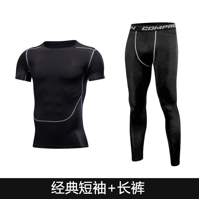 Track and field high elastic tights short-sleeved bottoming seven-point five-point pants fitness sports suit men's basketball equipment training clothes