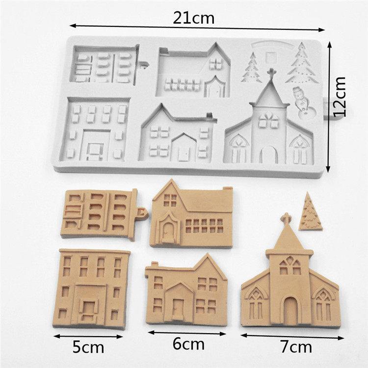 New Food Grade Fondant Cake Silicone Mold Small House Christmas Gingerbread House Mousse Chocolate Decoration Baking