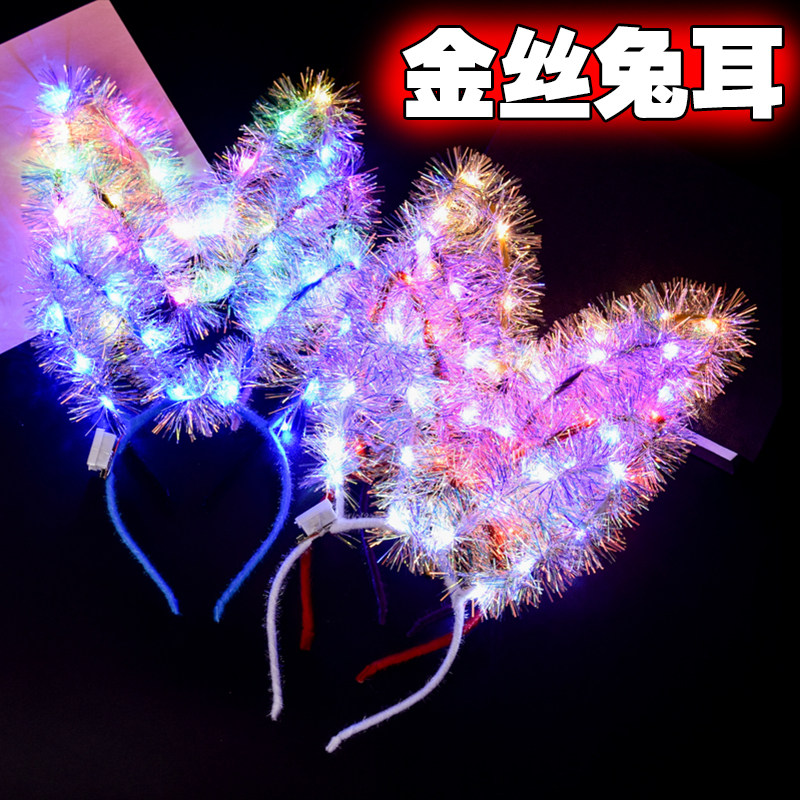Net red new luminous gold silk rabbit ears sparkling head accessories concert props with light creativity to spread children's toys