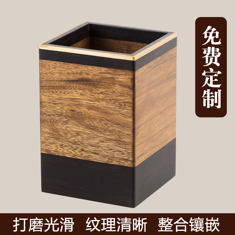 Mahogany pen holder high-grade golden silk nan wood retro Chinese style desktop decoration storage office pen holder lettering business gift custom logo
