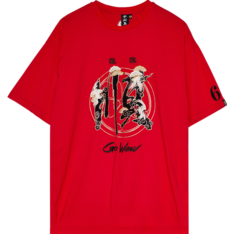 Semi-leisure set tide brand embroidery T-shirt Chinese style summer new fashion hip-hop men's cotton loose round neck short sleeve