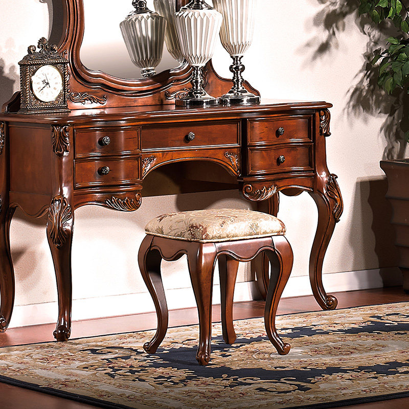 American solid wood makeup chair European style retro solid wood small stool for shoes stool G