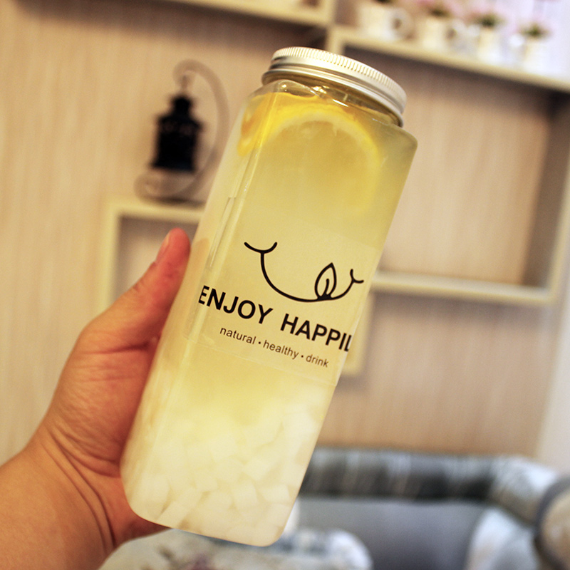 500ml Large Aperture Mesh Red Milk Tea Coffee Drink Freshly Squeezed Juice Packaged Takeaway Plastic PET Bottle Square Bottle