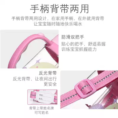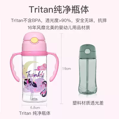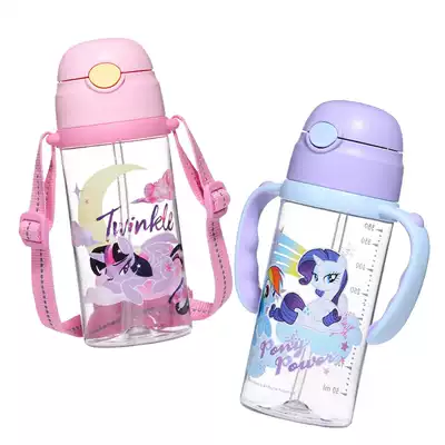 Pony Rainbow Pony Children's Tritan water cup with baby bag Dual-use straw Learning drinking cup Anti-drop handle Kettle strap Scale
