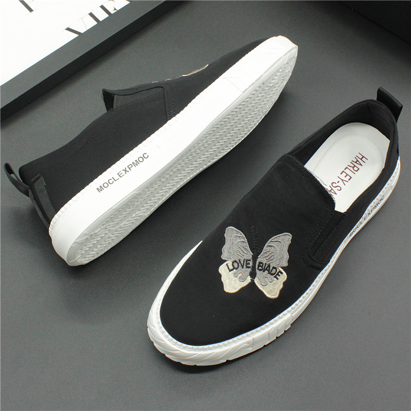 Summer light and breathable casual men's shoes low-cut foot set trend embroidery lazy shoes men's sewing soft-soled canvas shoes