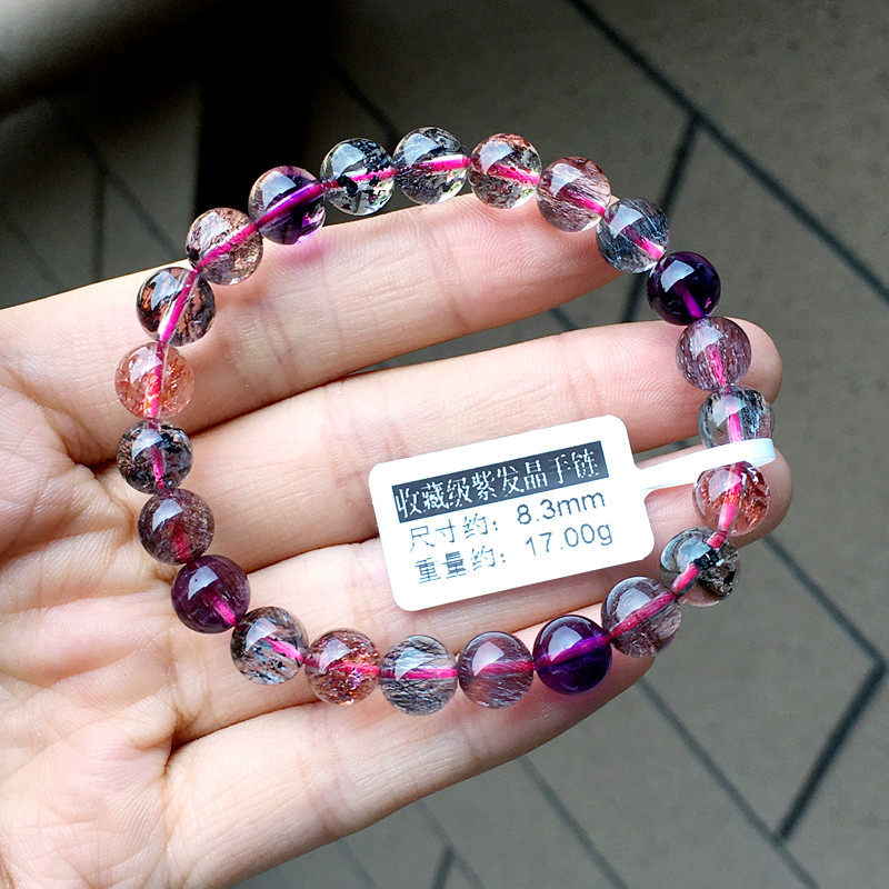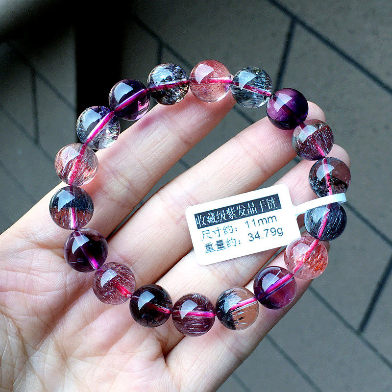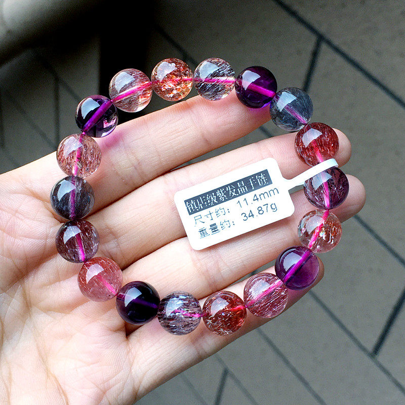 Lin Guofu Collection Grade 7A Purple Hair Crystal Handmade Lady Strawberry Crystal Handstring Super Seven Three-wheeled Backbone Crystal