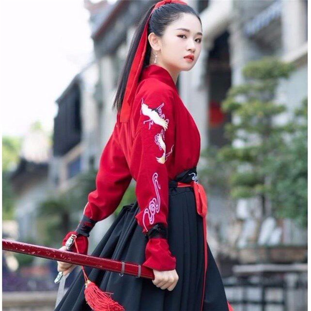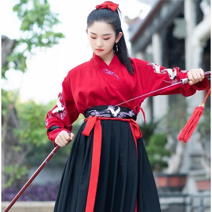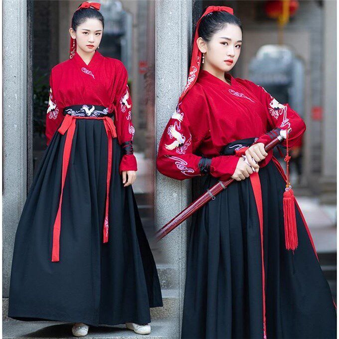 Ancient costumes can be worn daily in spring and autumn, cranes, embroidery, cross-collar skirts, martial arts style couples, CP outfits, student class suits