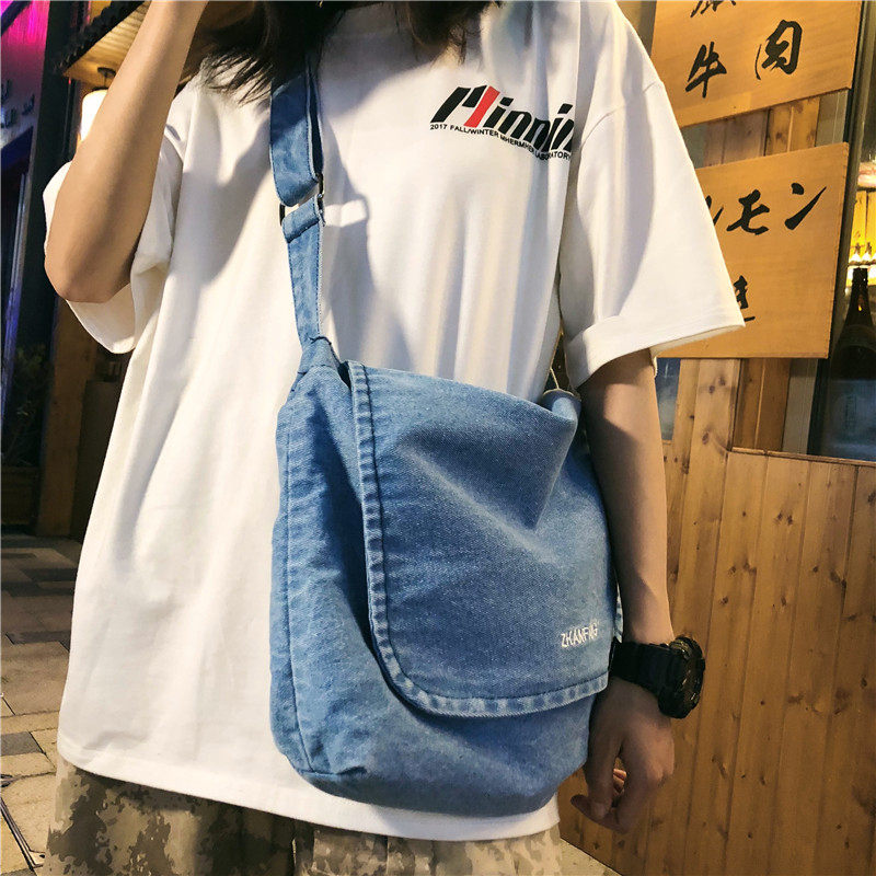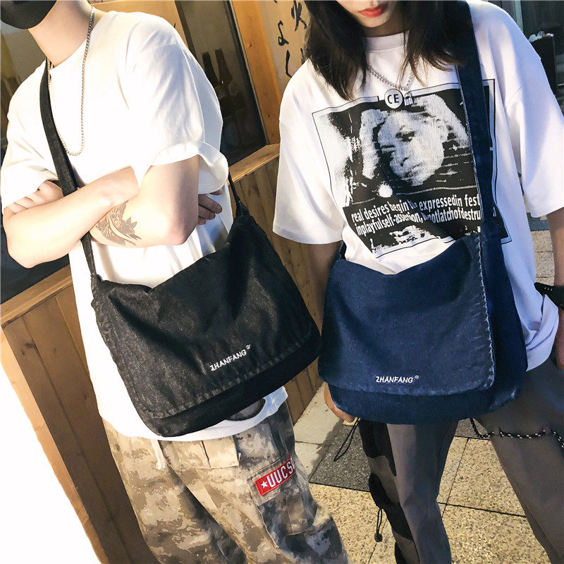 ins medium bag female canvas bag female messenger college student class Korean version of the shoulder bag tide messenger bag college style all-match