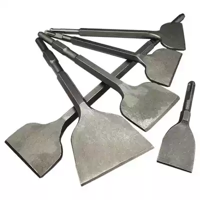 Fine electric pick flat shovel flat chisel 0810 long hexagonal handle widened ultra-thin extended flat shovel cement wall slotting coagulation