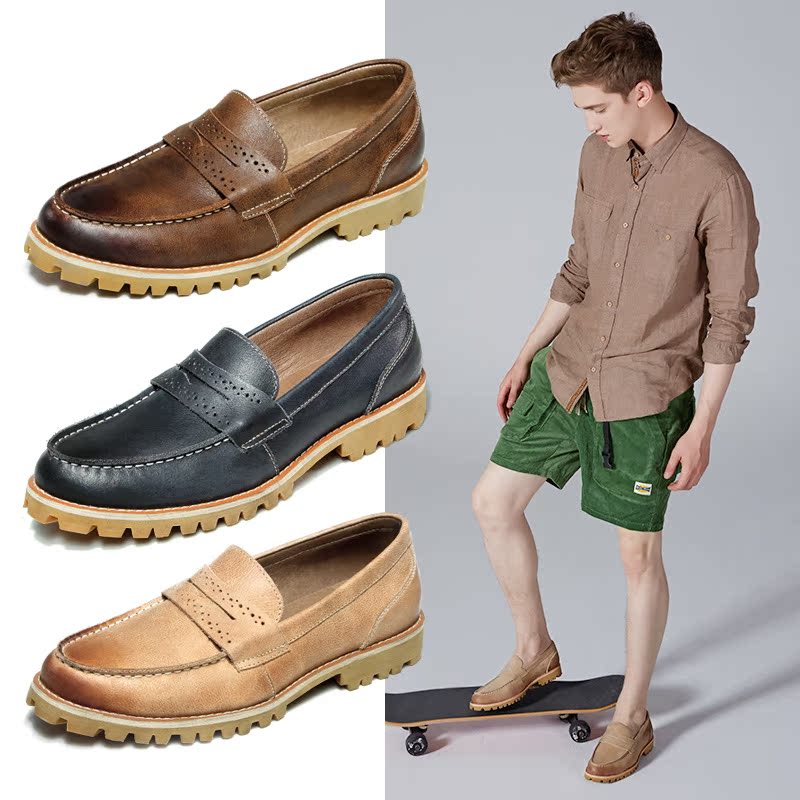 Marduk leather sailing shoes British fashion men's casual shoes Korean version of the trend of lazy one pedal loafer