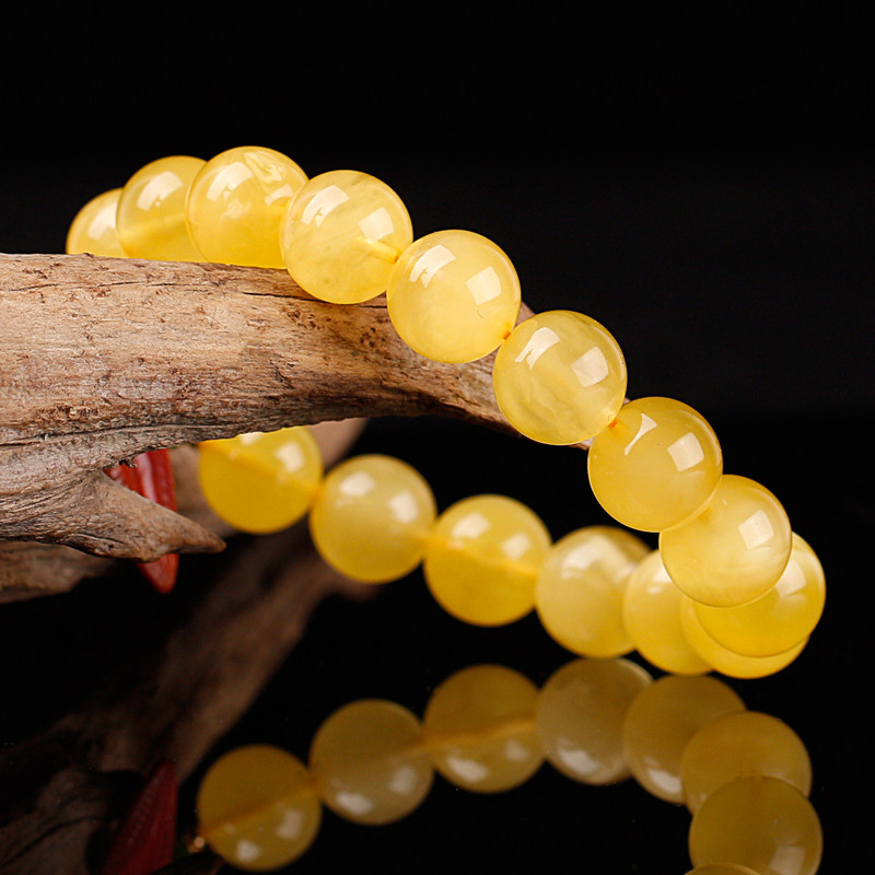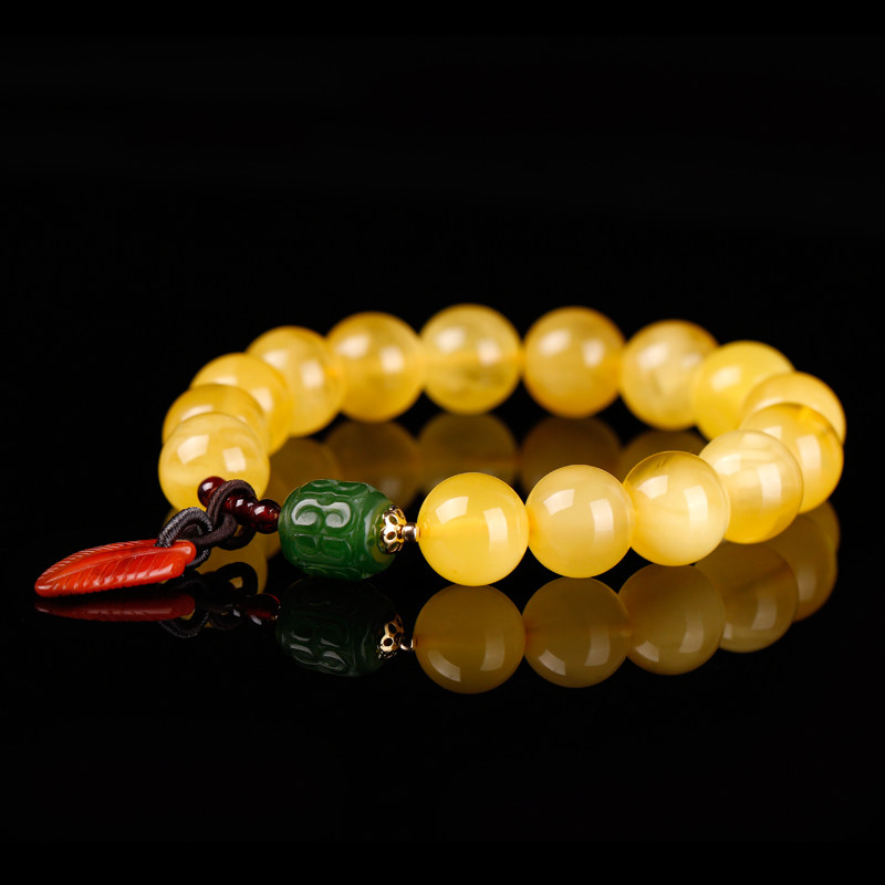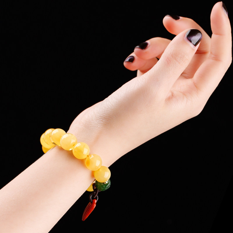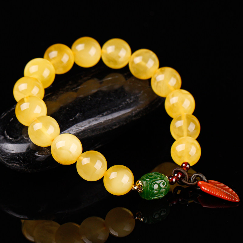 Pu Cai natural amber rough beeswax beads hand string female chanterelle yellow beeswax hand ornament single circle with beads bracelet