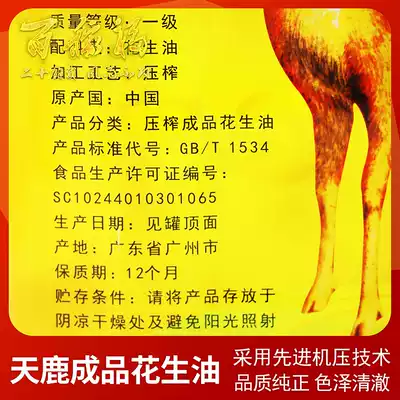 Tianlu peanut oil first-level pressing peanut oil 15 liters L non-genetically modified edible oil restaurant use Guangdong