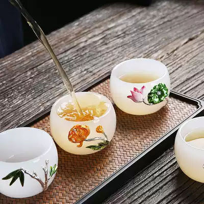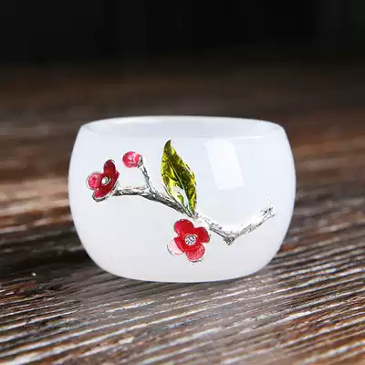 Inlaid silver white jade porcelain glass teacup Glass tea cup Master cup Japanese Kung Fu tea set Personal single cup small teacup