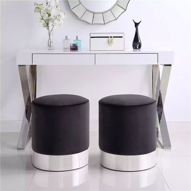 Nordic Light Lavish Velvet Cloth Art Try Changing Shoes Stool Round Shaped Ink Green Metal Dresser Home Pier Down-to-earth Bench Short