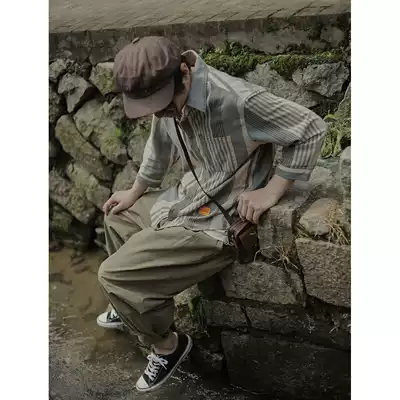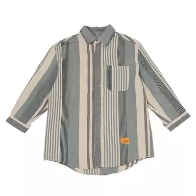 Japanese retro vertical stripe seven-quarter sleeve shirt male summer loose college style hipster student casual coat tide