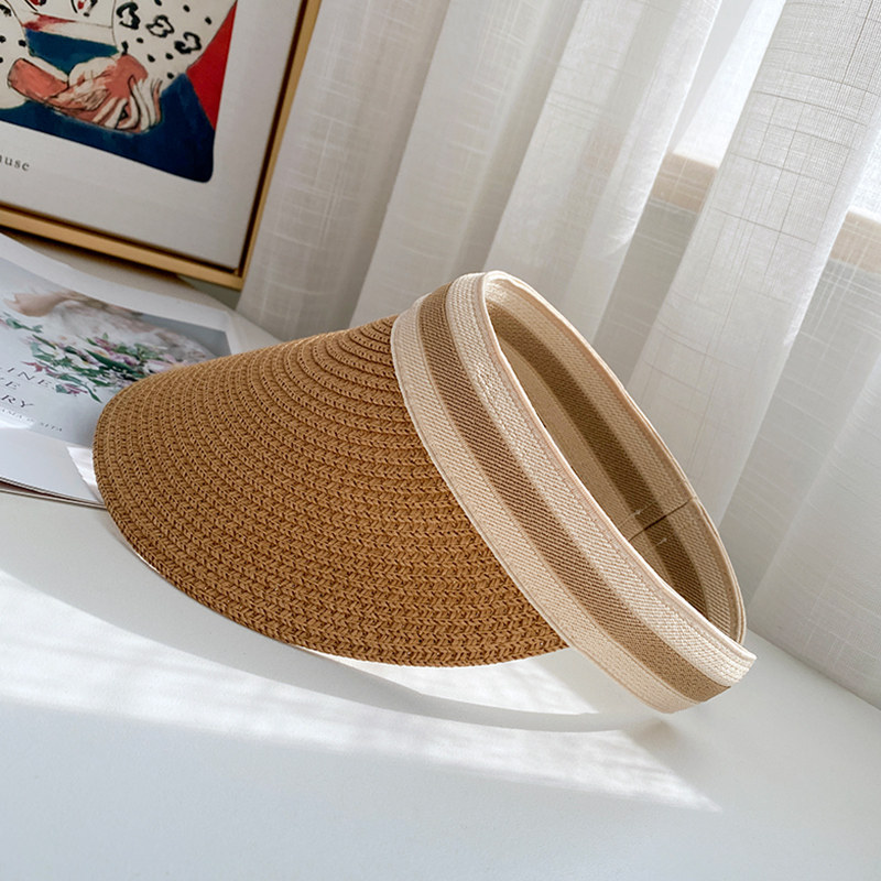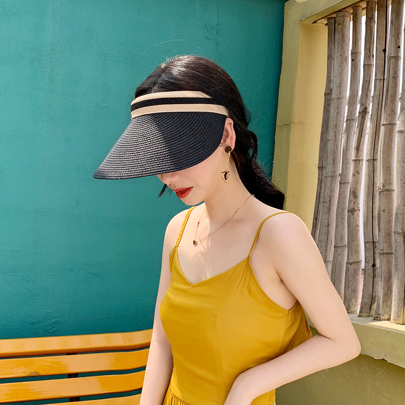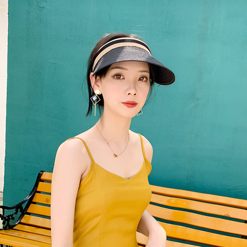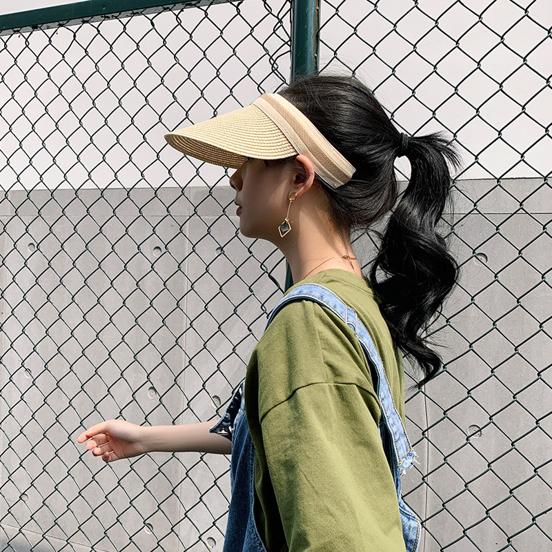 Sun hat women's sunscreen empty top hat Summer Korean version of the travel cool hat Beach straw hat Cycling hairless hoop sun hat